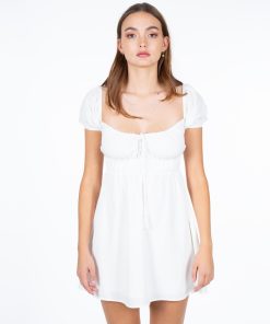 NFC03301G-050 Vestido Full White Manga Corta Estilo Abullonada