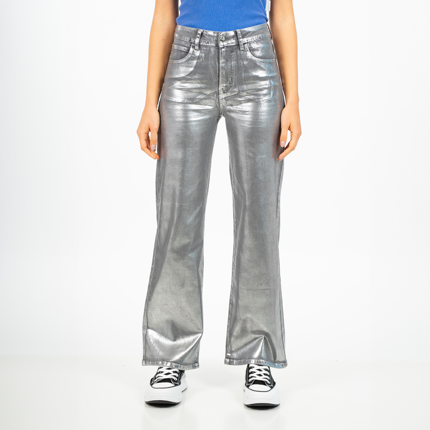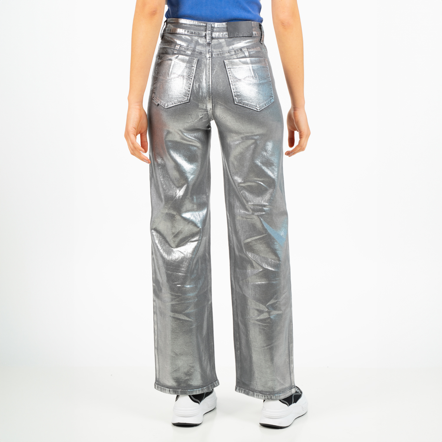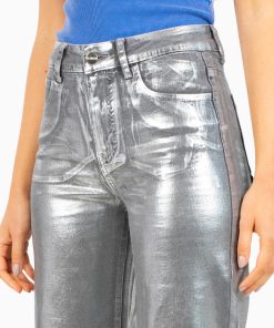 Jeans Ariana Wide Leg Light Gray Back To Glossy Silver Effect