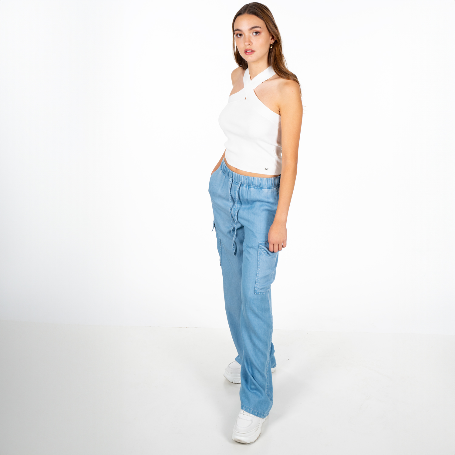 Pantalón Denim Estilo Cargo Tencel
