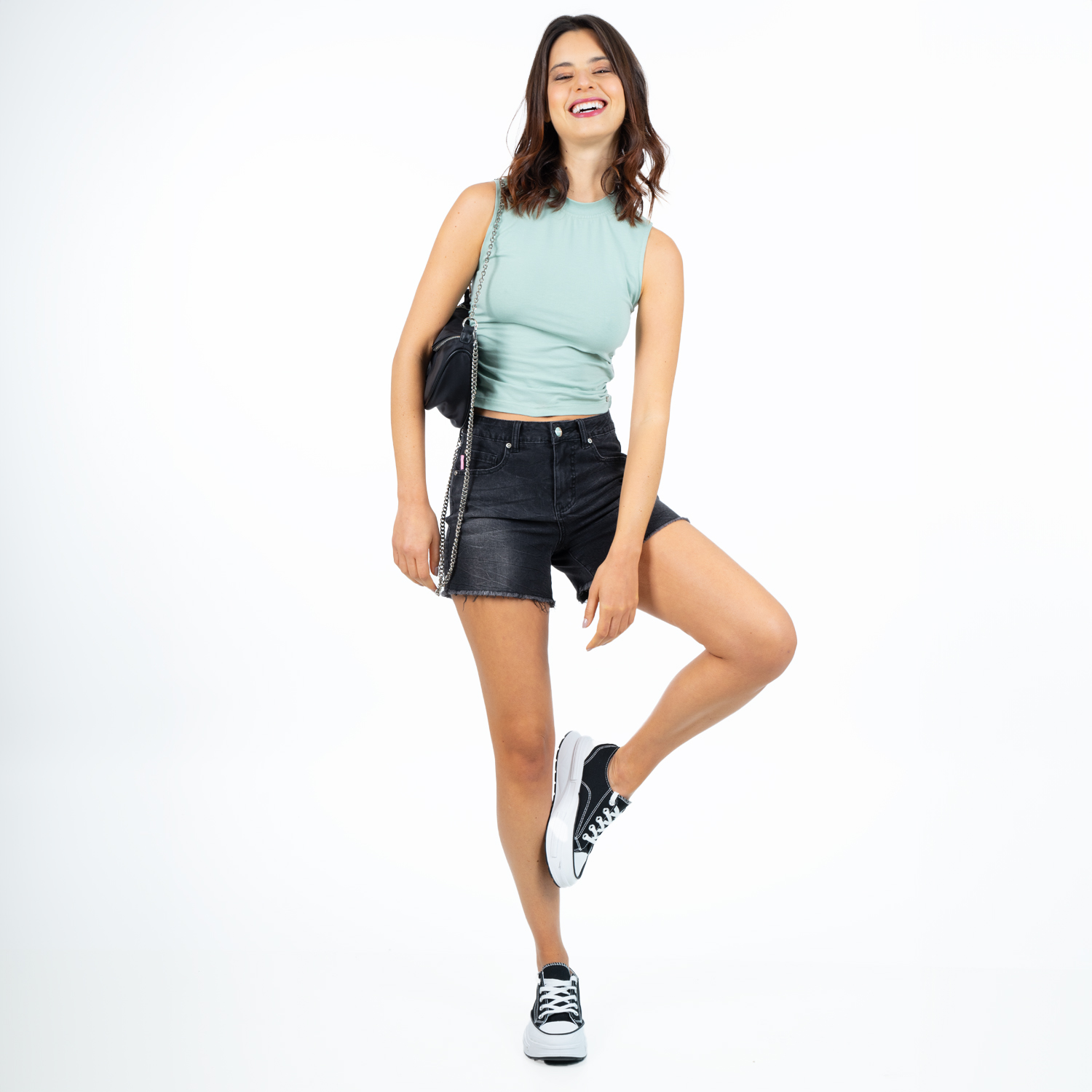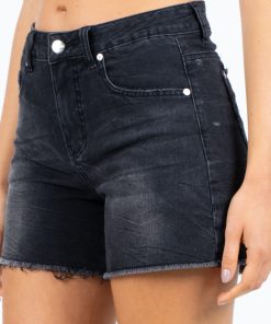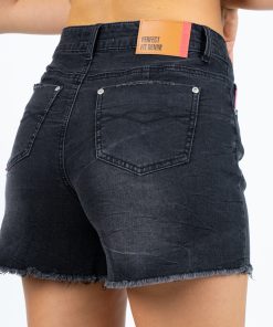 MF061059G-G21 Short Denim Black Gray Basta Y Bolsillos Pulidos